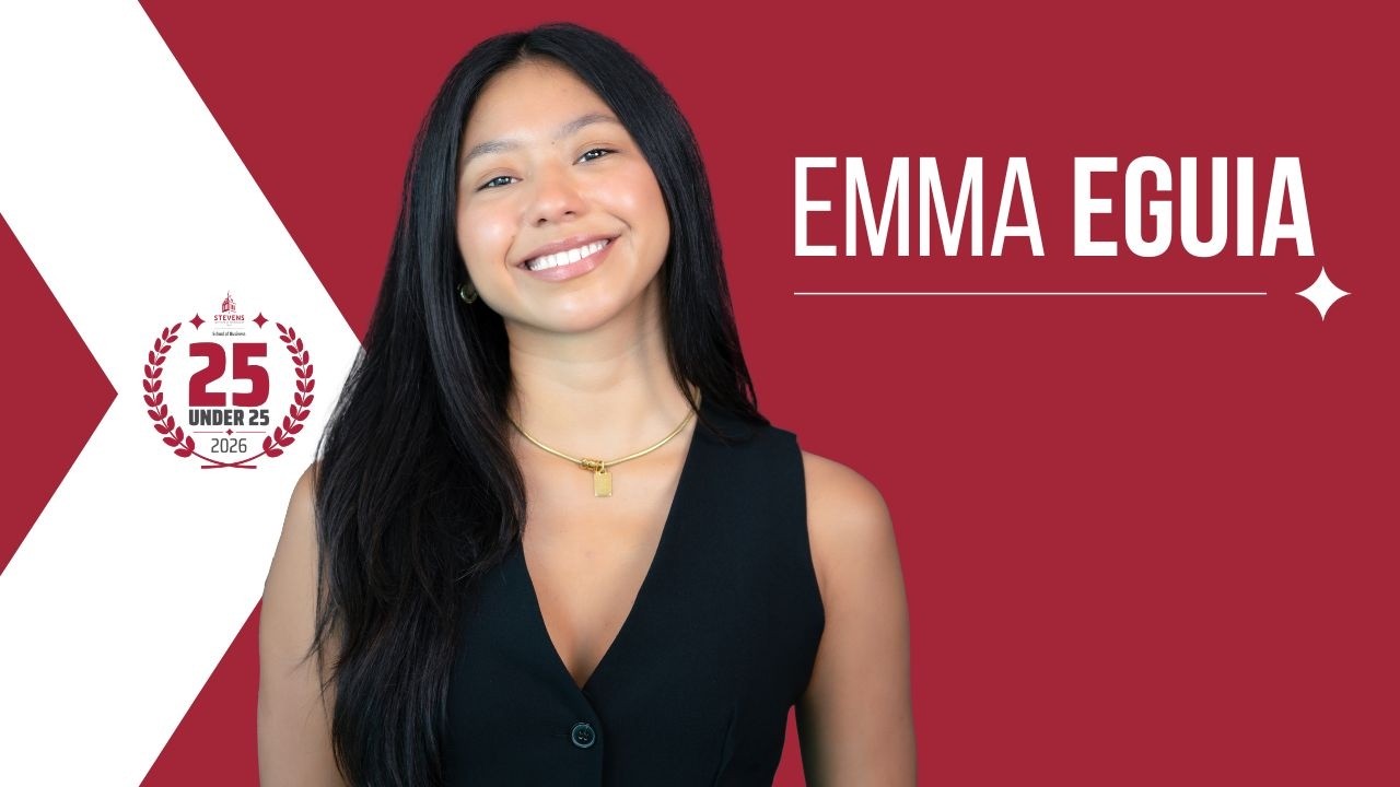 From Peru to Hoboken, Emma Eguia’s path to the Stevens School of Business has been anything but linear. Originally drawn to medicine by a desire to serve others, Eguia pursued a Biology degree at Stevens with concentrations in Medical Humanities and Science, Technology and Society, graduating with a 3.8 GPA and high honors. Along the way, a Healthcare Leadership and Management Certificate introduced her to the managerial dimensions of care, inspiring her to develop two original healthcare initiatives: The New American Healthcare Trust, a nonprofit model centered on culturally responsive care, and Alma Sana, a pediatric framework designed to improve health outcomes for Hispanic immigrant children. It also led her into the world of business.